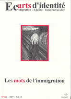 Sommaire Editorial Identité et identité nationale- Joël Roman. Co-développement - Jacques Barou. Repentance et Militants de la mémoire - Philippe Videlier. Emeutes et révoltes Lutter ensemble, lutter contre - Catherine Withold de Wenden. Les mots pour dire les uns et les autres - Smaïn Laacher. Le Royaume des « Harragas » - Mustapha Najmi. Concepts en panne - Joël Roman. Accueil et intégration, à propos des connaissances linguistiques - Cyril Trimaille. Immigré/colonisé - Sidi Mohammed Barkat. Qu’est-ce que la « Culture postcoloniale » ? - Nicolas Bancel & Pascal Blanchard. Indéfinitions - Daniel Pelligra. L’universalisme républicain dans ses derniers retranchements - Abdelkader Belbahri. La phobie des « atteintes » à la République, confusions et amalgames - Albano Cordeiro. Médias et « immigration », Catégories du vide et effets performatifs auprès des intéressés - Nasser Tafferant & Olivie Cchavanon. Générations issues de l’immigration : Les jeunes issus de l’identité française - Catherine Withold de Wenden. Intégration / Ethnicisation - Françoise Lorcerie. Intégration - Sidi Mohammed Barkat. Laïcité et intégration - Mohammed-Chérif Ferjani. Laïcité / Islam ; Eléments d’histoire pour un débat serein - Drisss El Yazami. Universalisme -Virginie Milliot Insertion - Sidi Mohammed Barkat Discrimination positive - Manuel Boucher Immigré mot à maux - Achour Ouamara Transnationalisme et immigration - Marco Martiniello L’ultime voyage de Rimbaud - Redoaune Taouil L’origine en question -Abdelhafid Hammouche Deux maux des Harkis - Régis Pierret Racisme et santé mentale- Jean Furtos. Etre plurilingue - Jacqueline Billiez Designation, auto designation - Amin Azzam Le joueur de couteau et l’hirondelle - Philippe Hanus Territoire déclinez votre identité - Bencharif Communauté , communautarisme - Abdellatif Chaouite Octobre novembre 2005 - Sidi Mohammed Barkat Notes de lecture Revue des revues